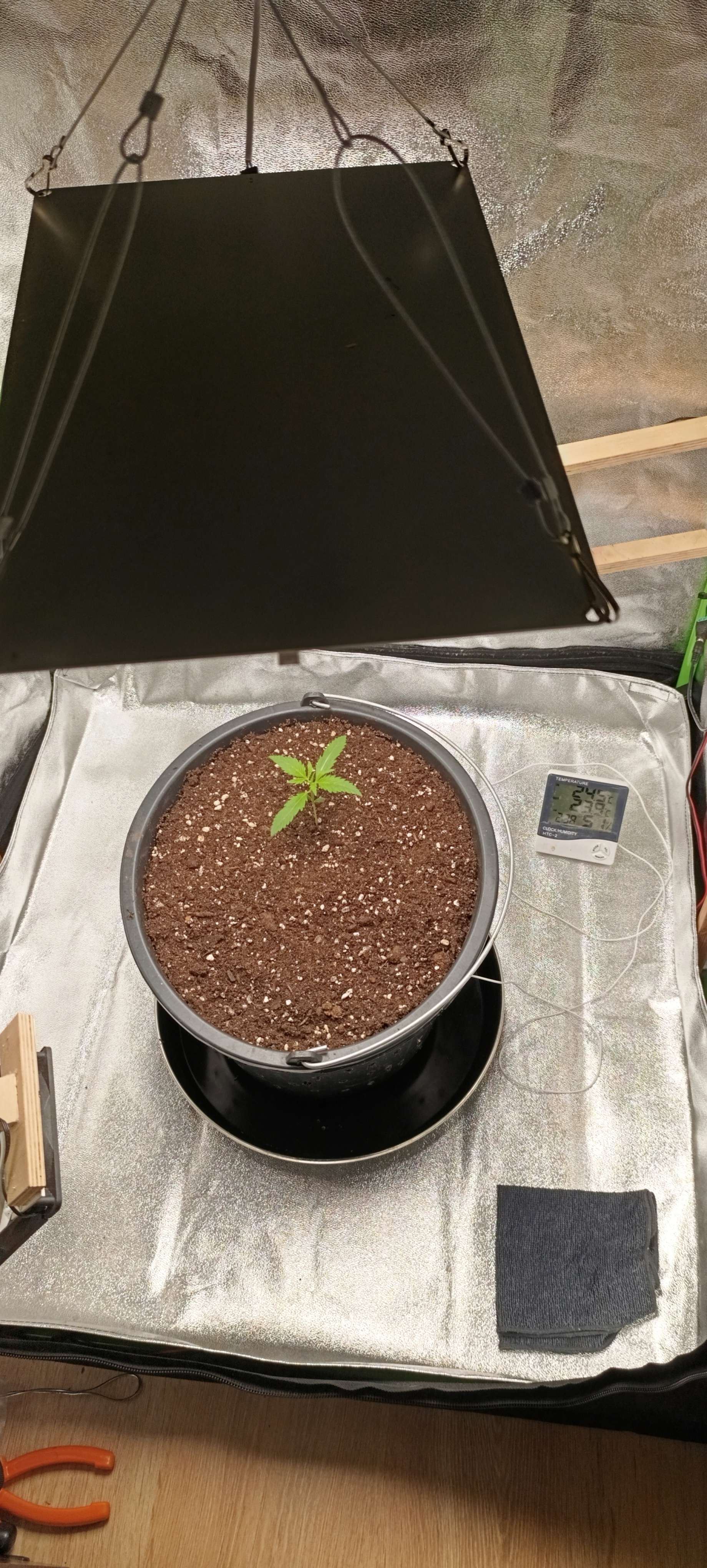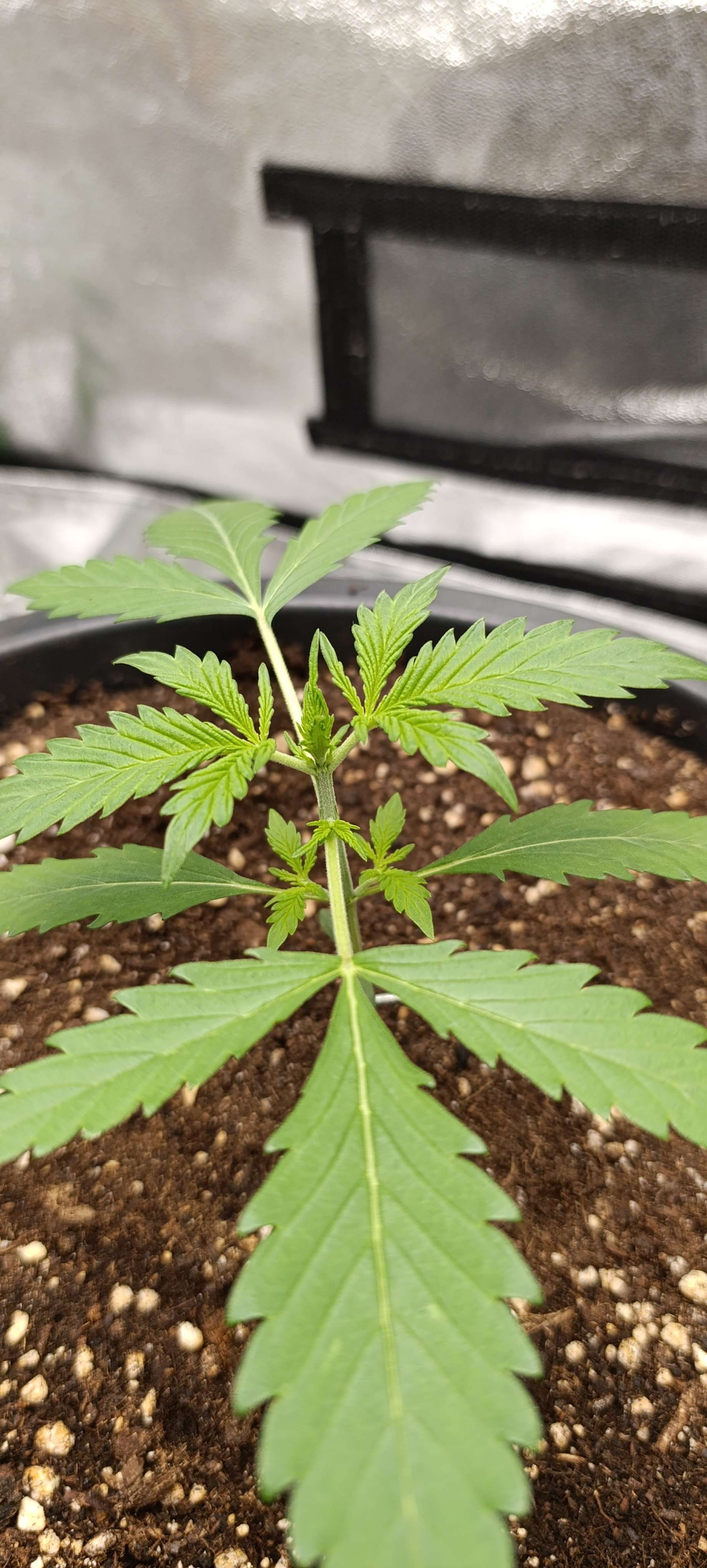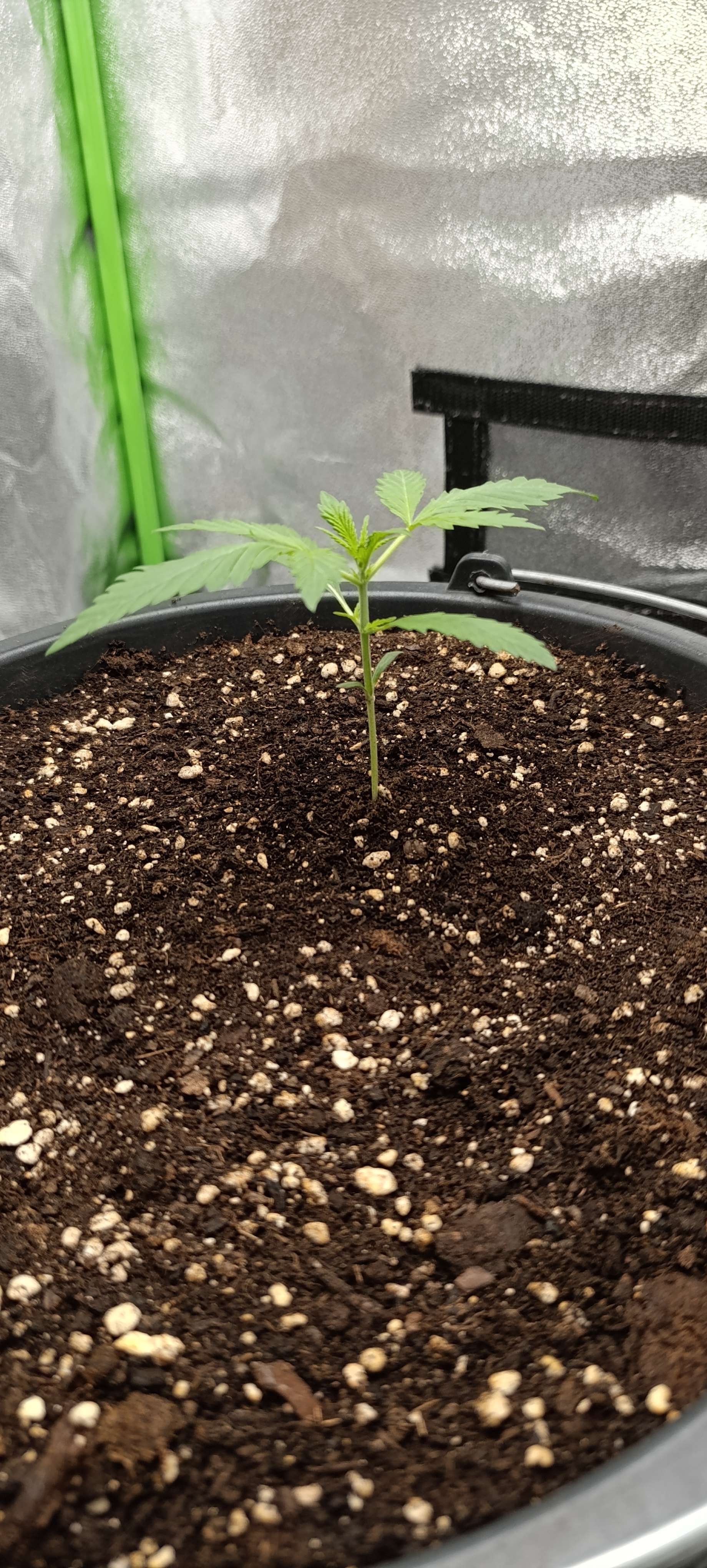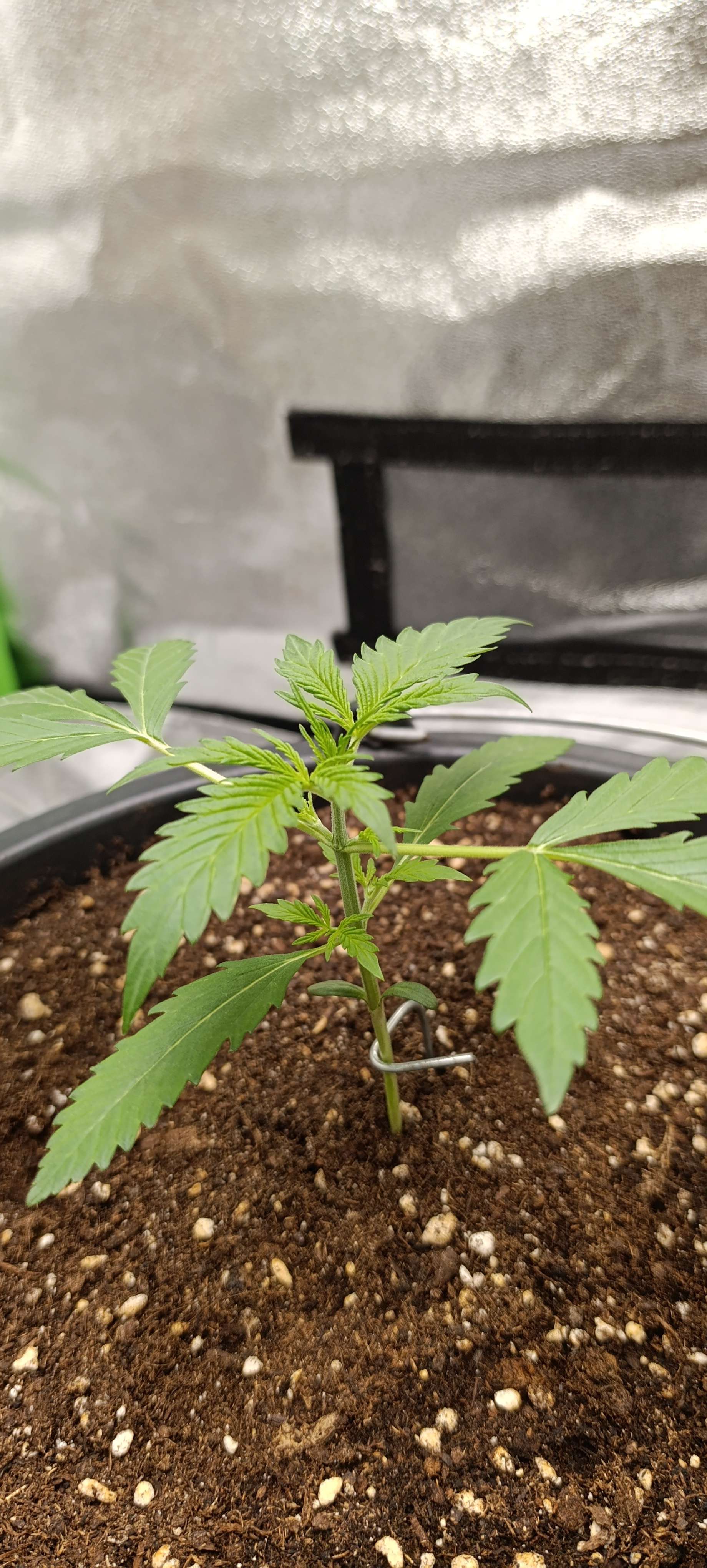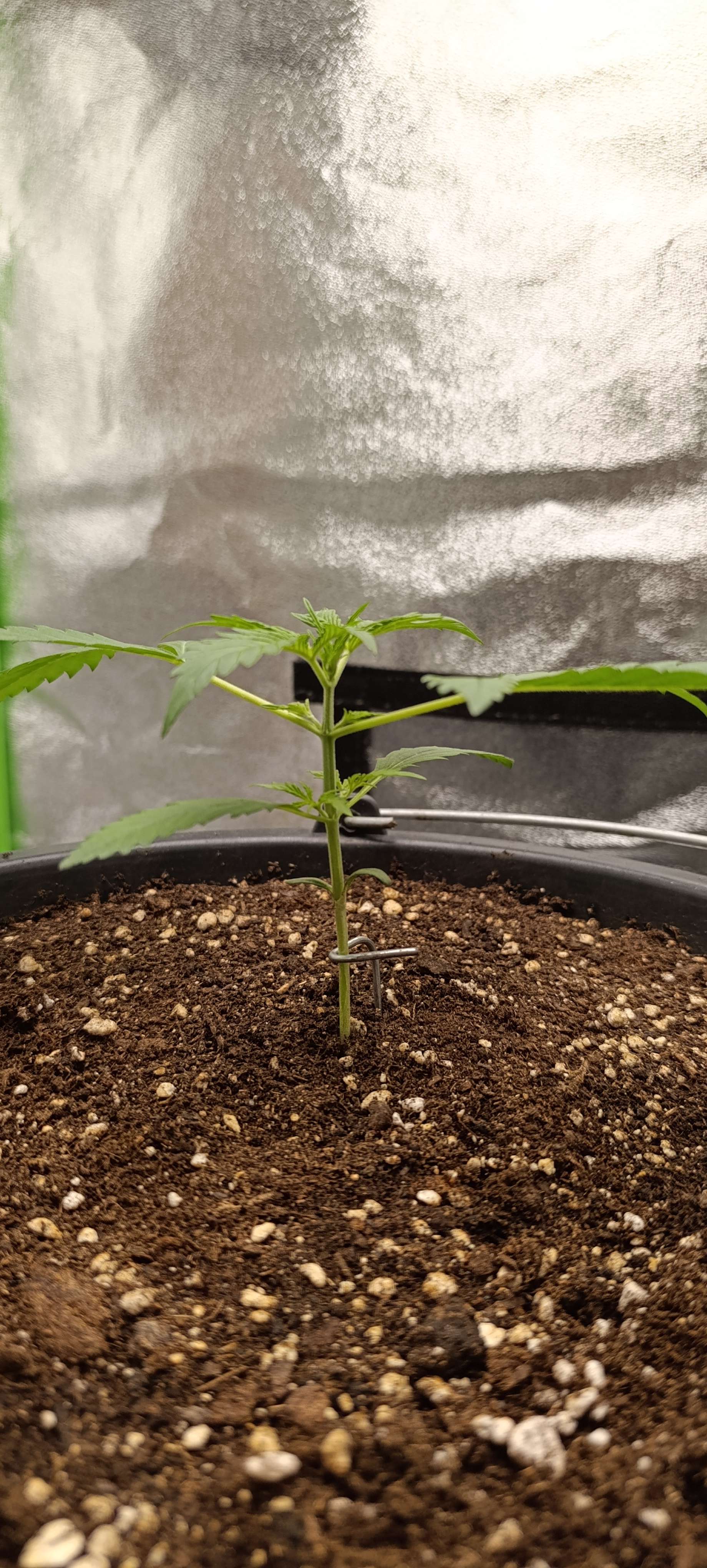 Заканчивается вторая неделя. Ждем третью пару листьев и будем пригибать. Свет на прежнем уровне.
