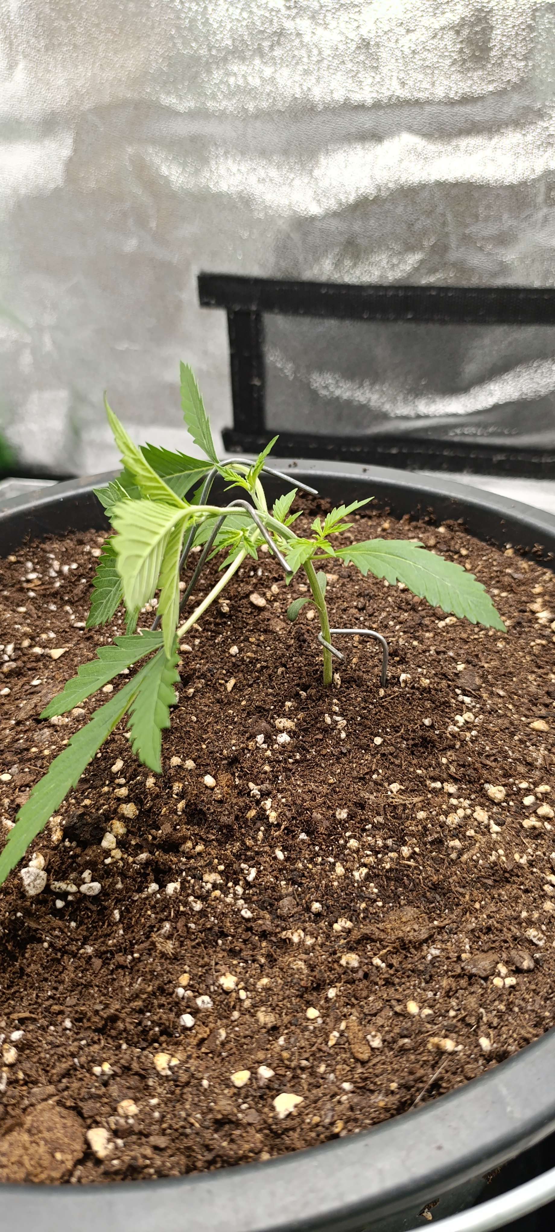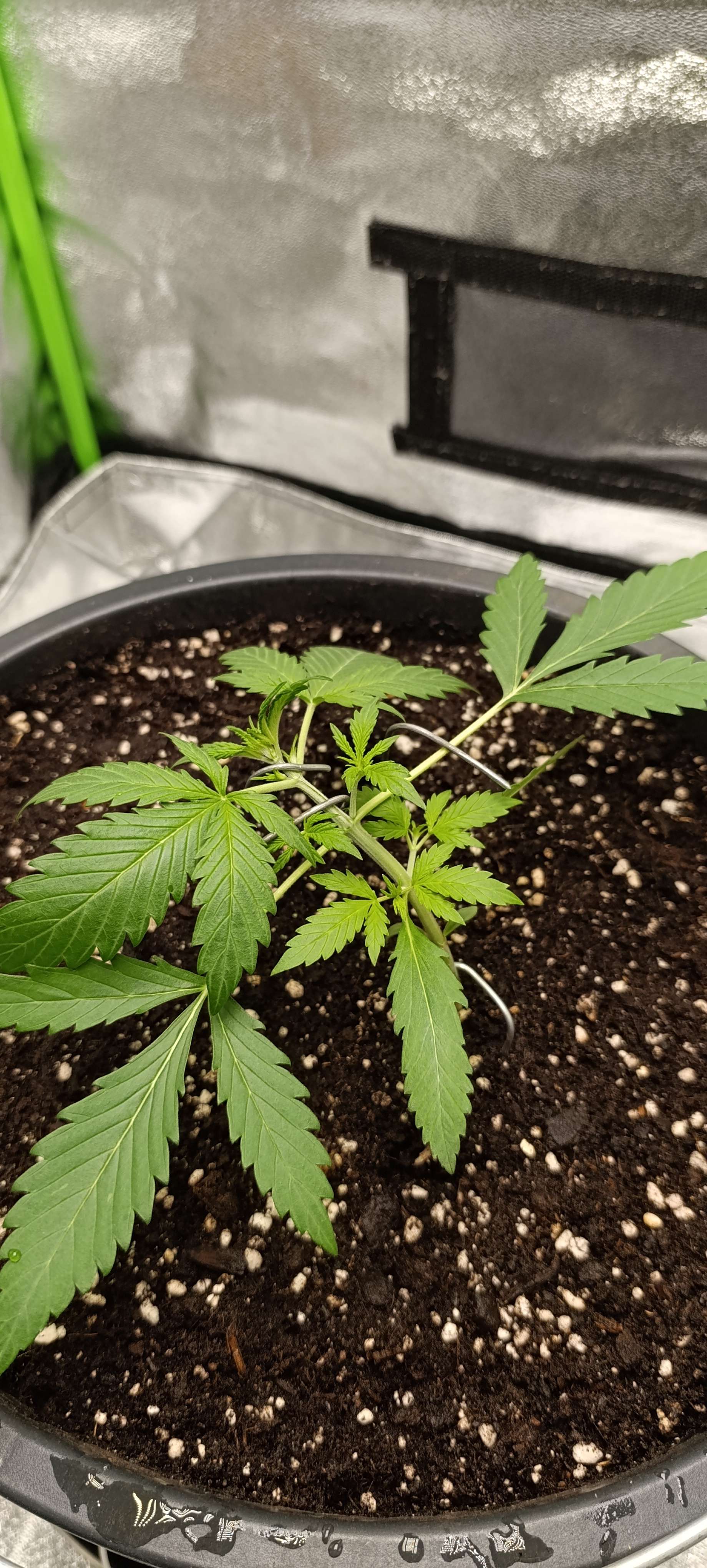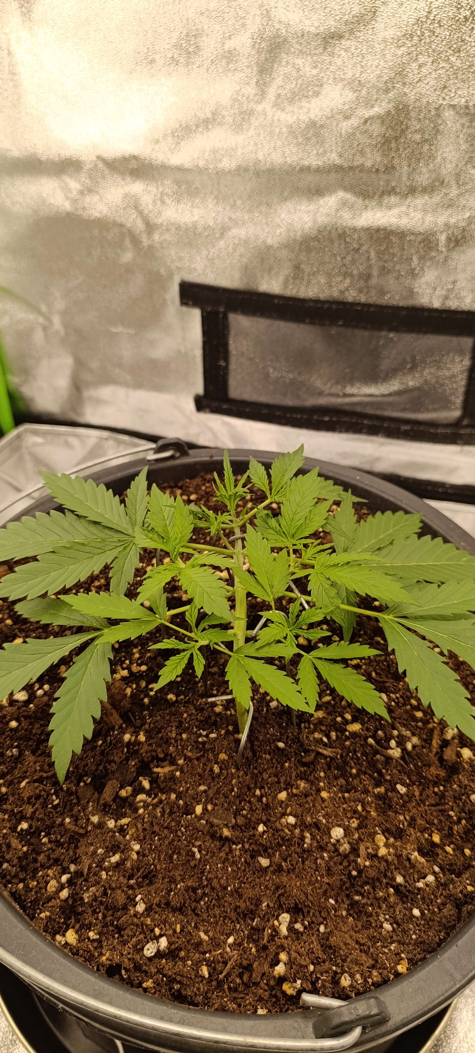 Неделя началась с небольших тренировок. Решили не тянуть т.к. стебель начинает крепнуть и набирает упругость. Свет 20 000 LUX.