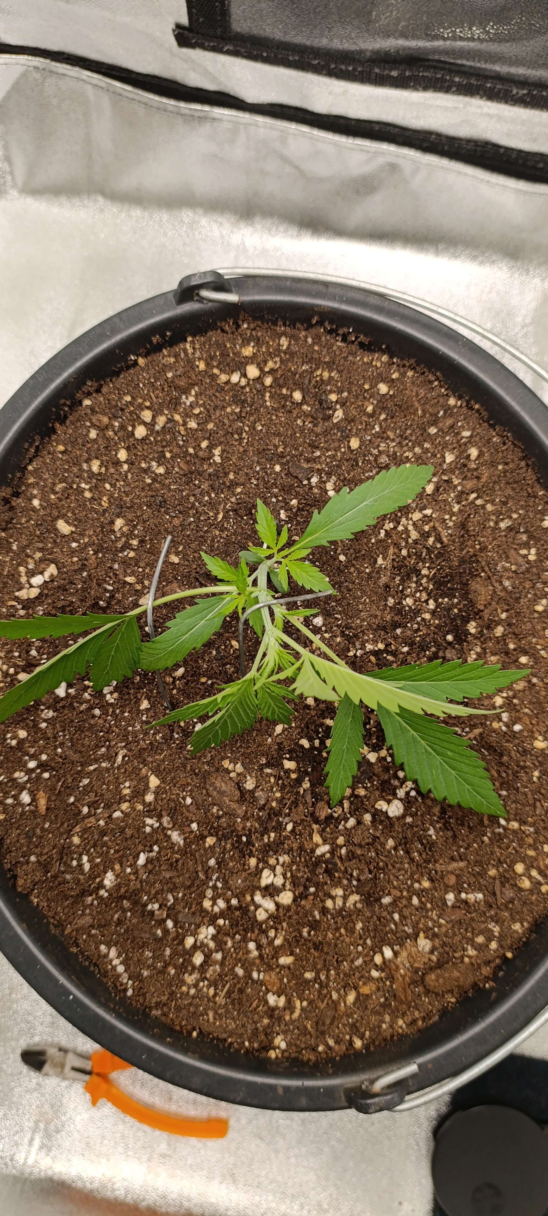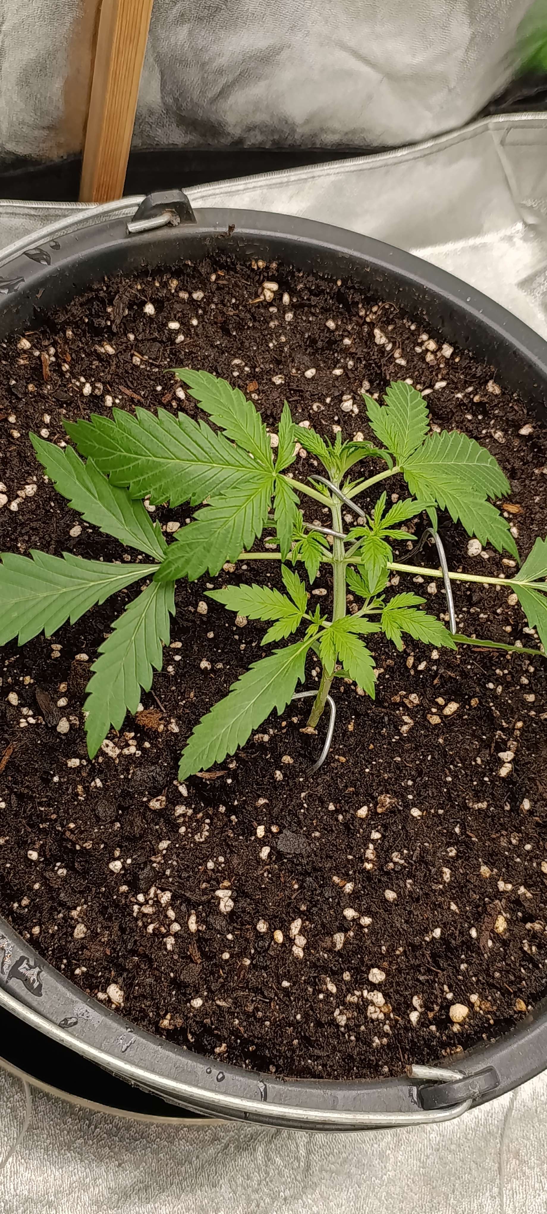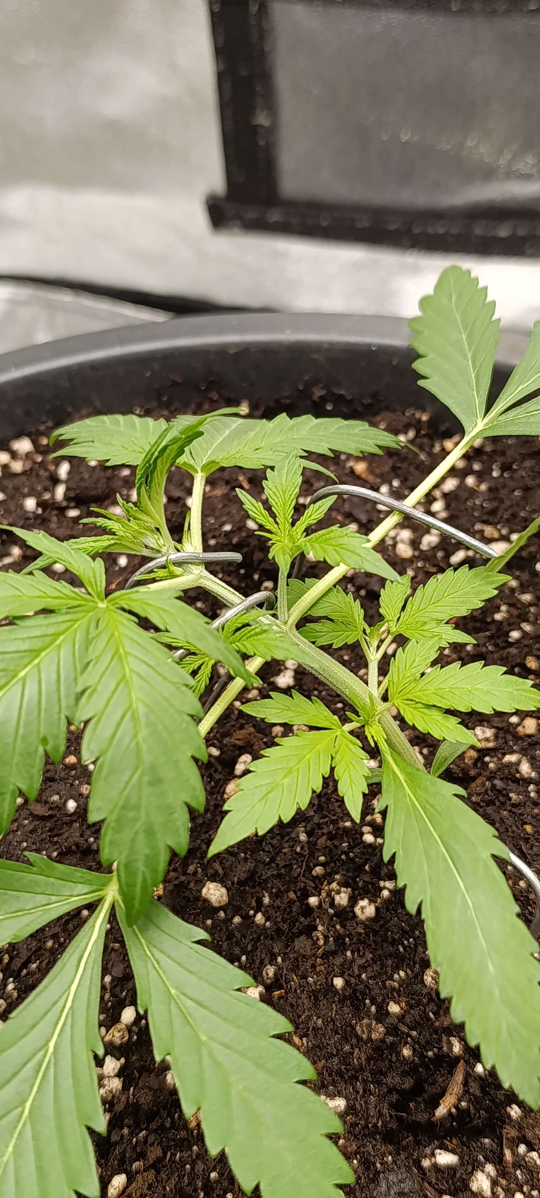 Неделя началась с небольших тренировок. Решили не тянуть т.к. стебель начинает крепнуть и набирает упругость. Свет 20 000 LUX.