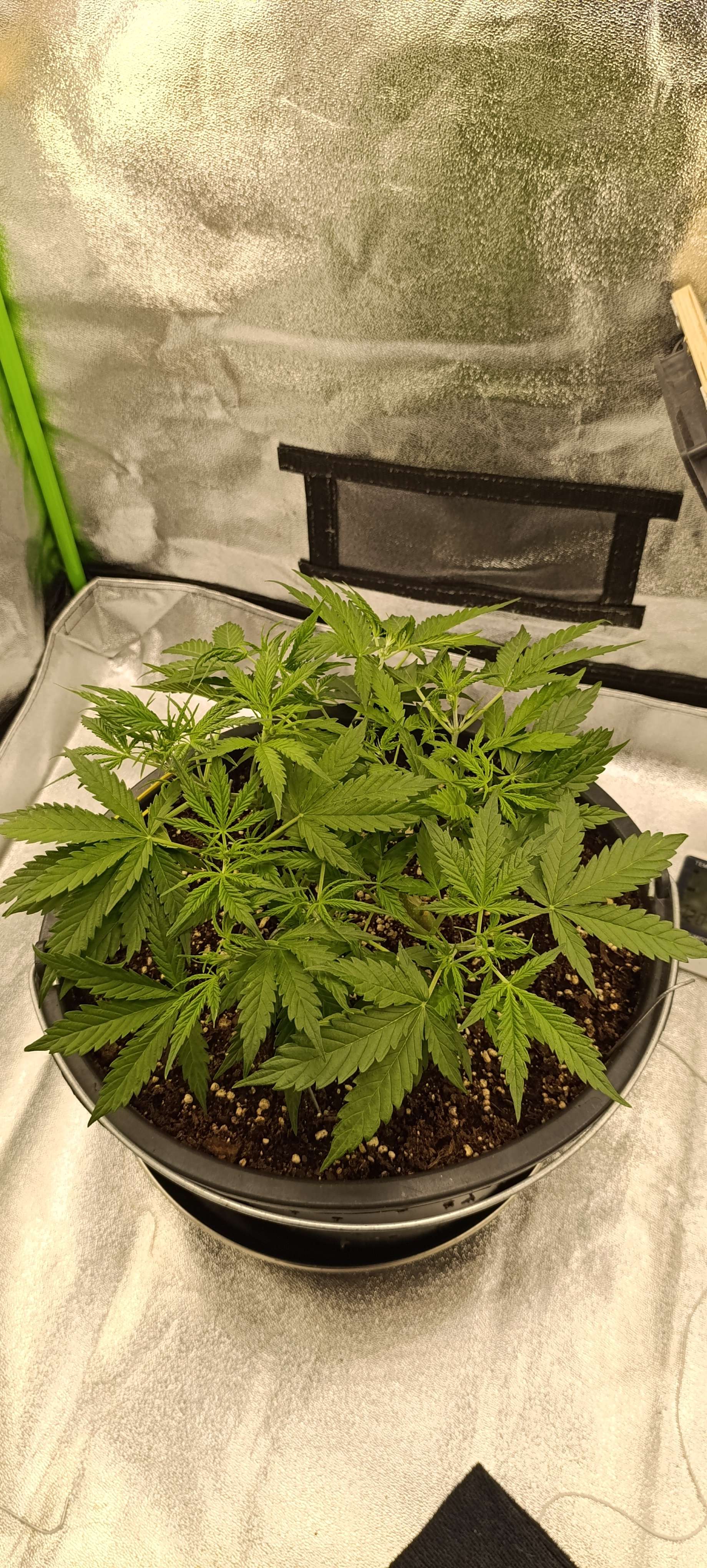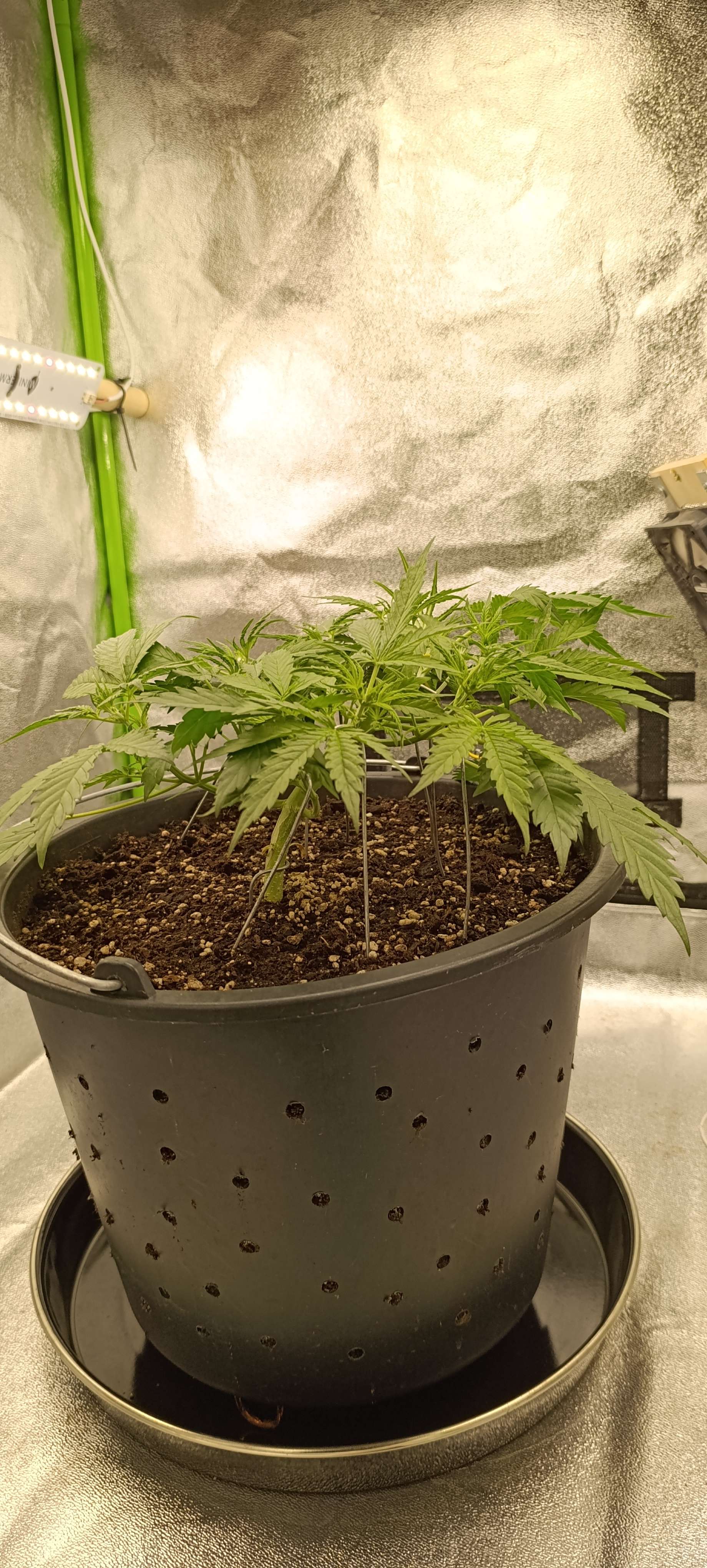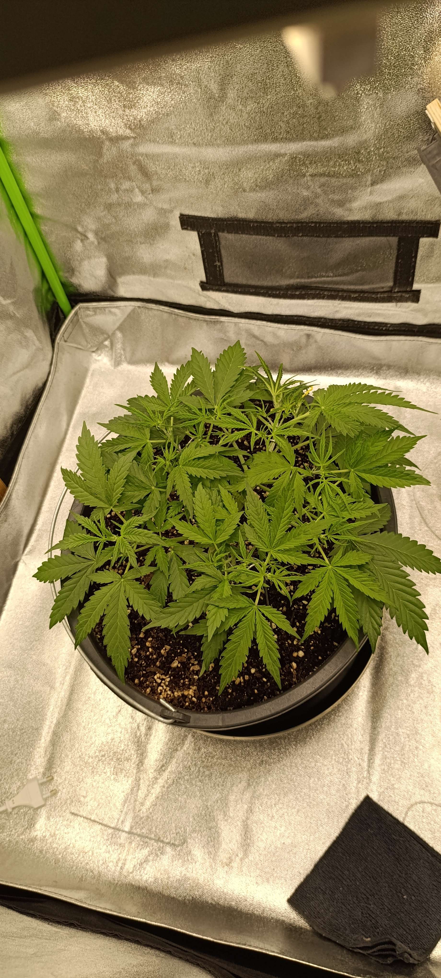 Авалона показала пол. Включили боковой досвет. Подрезаем 1-2 листика в день. Режем нижние, которые перекрыты другими листьями. Верхние, которые перекрывают свет для точек роста, подгибаем. Свет 28 000 LUX.