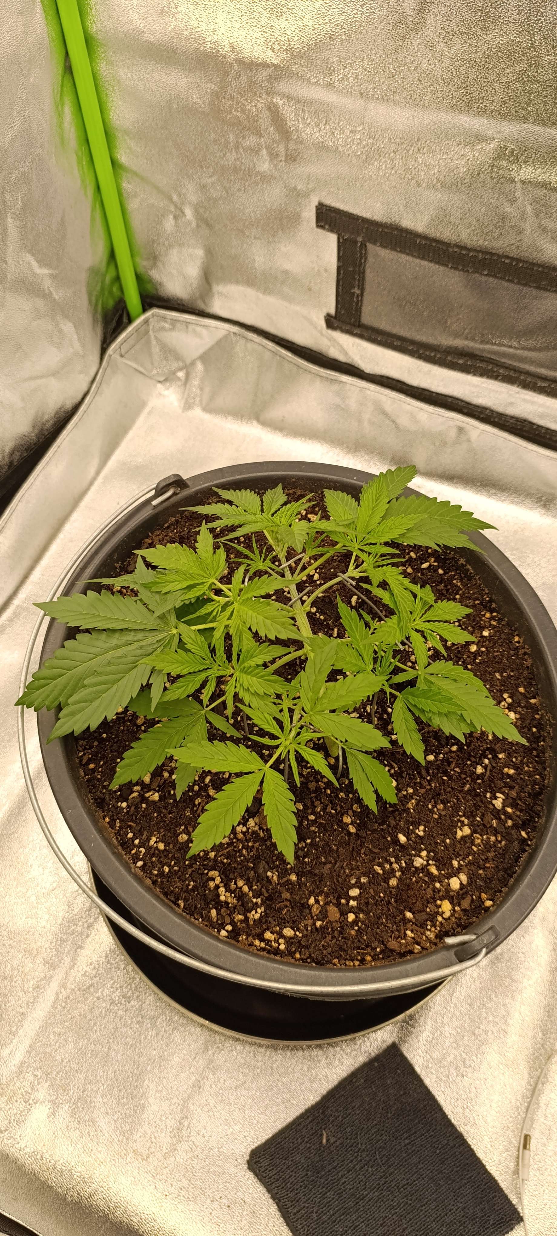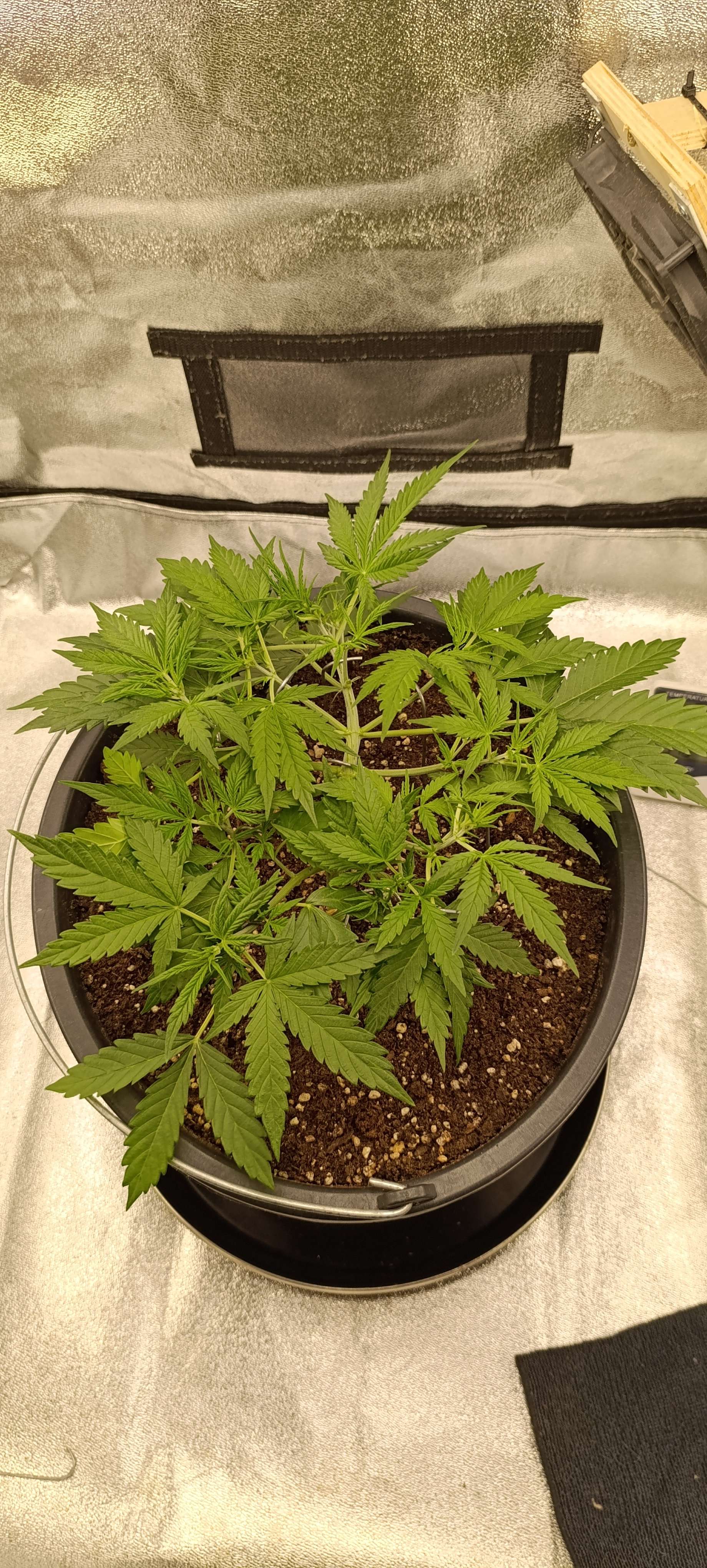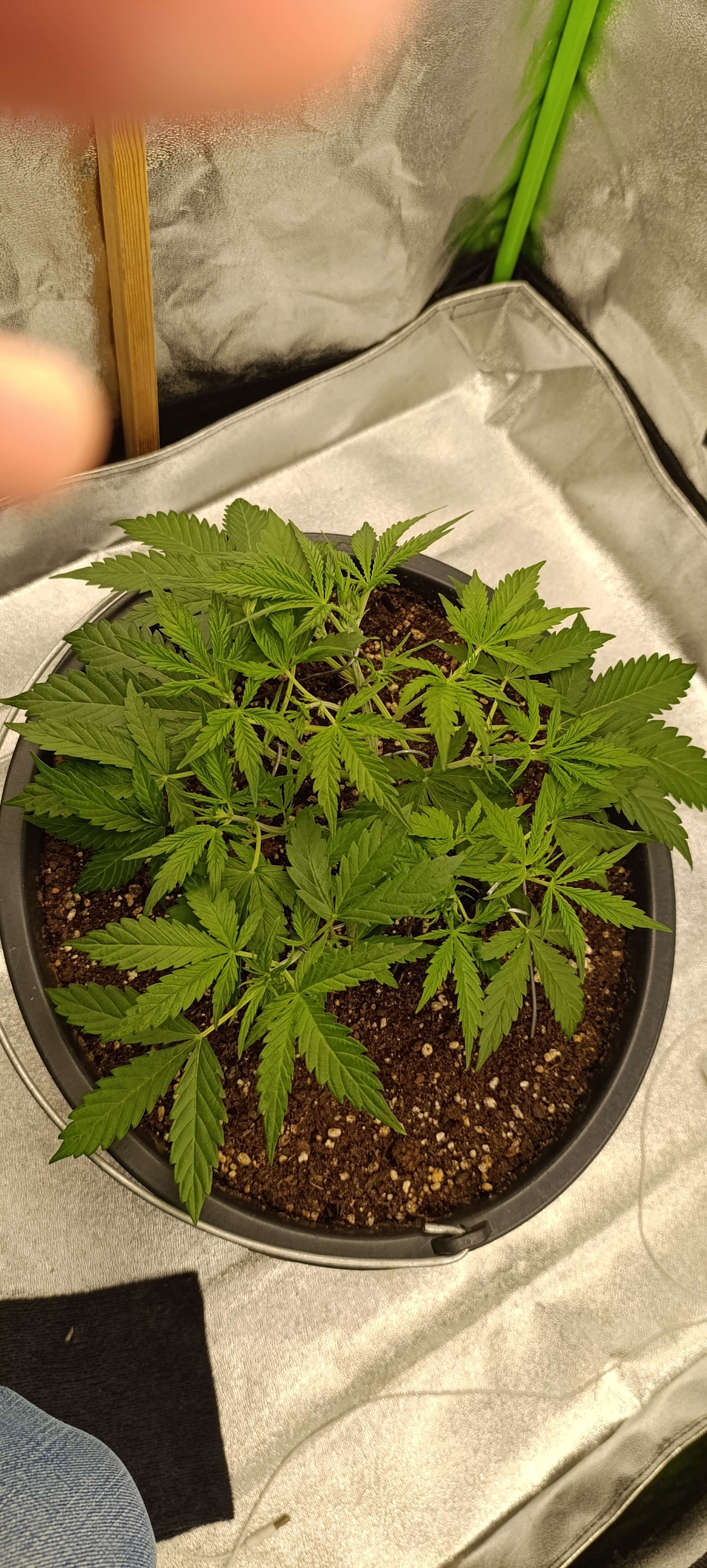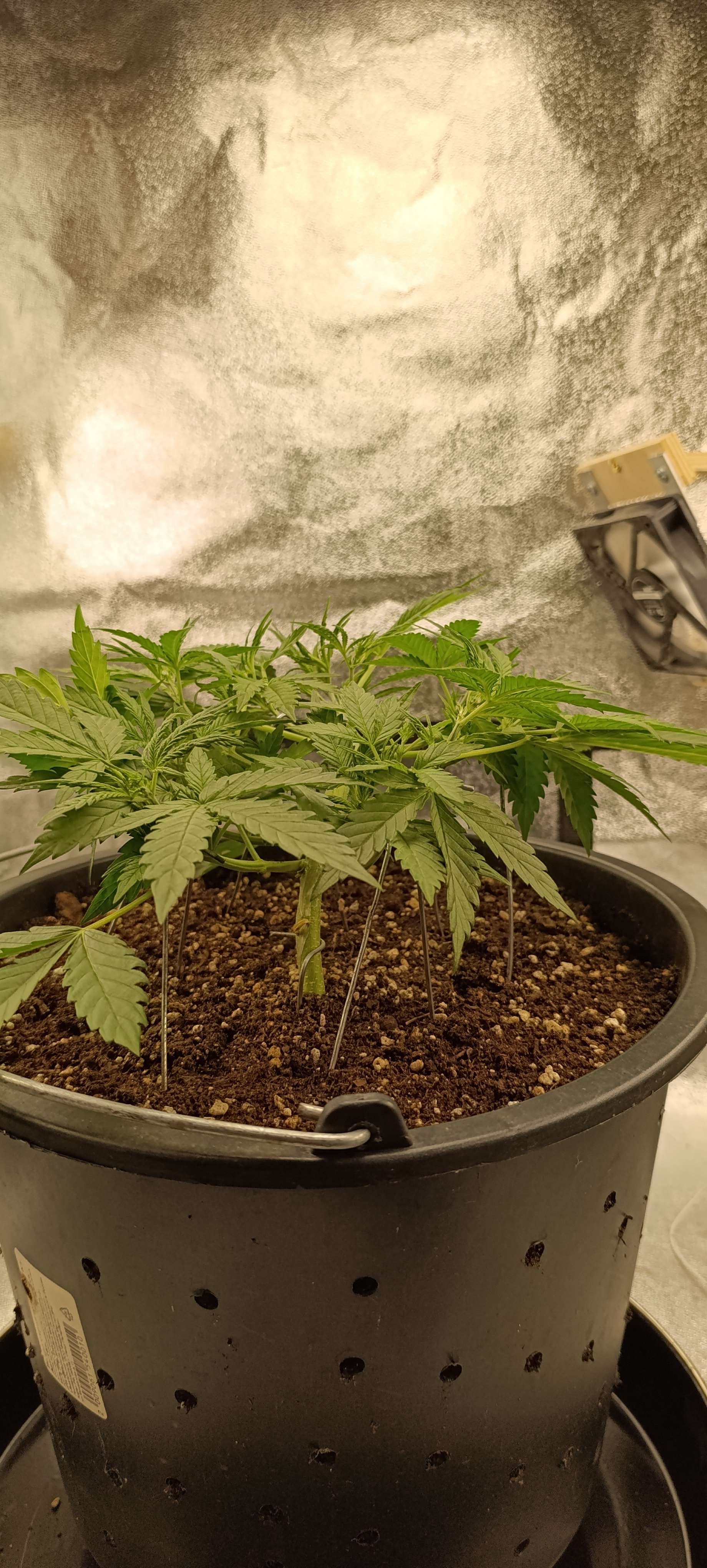 Авалона показала пол. Включили боковой досвет. Подрезаем 1-2 листика в день. Режем нижние, которые перекрыты другими листьями. Верхние, которые перекрывают свет для точек роста, подгибаем. Свет 28 000 LUX.