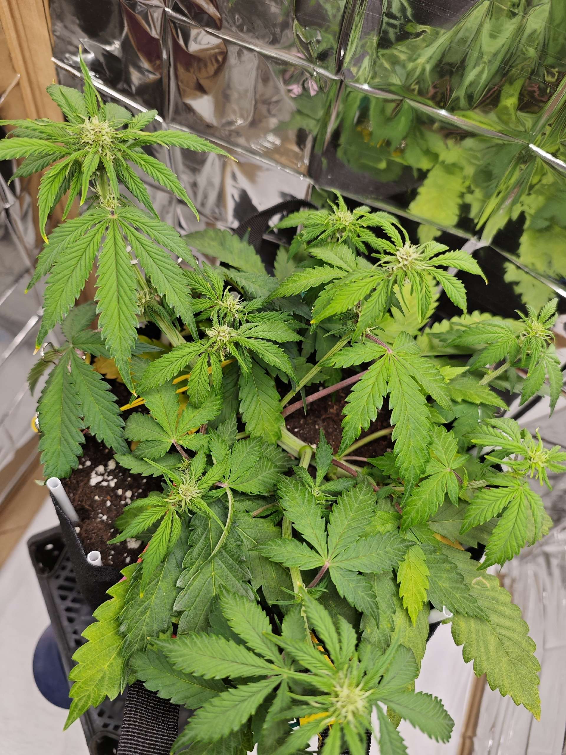 Привет. У меня на той же стадии сейчас , что и у тебя , и тот же сорт) слежу как у тебя продвигаются дела. Начинали желтеть так же. Удобрение только на Вегу добавлять начал. На этой стадии ppm 900 должно быть . Это же автик. Они быстро кушают удобрение. Вот тебе таблица