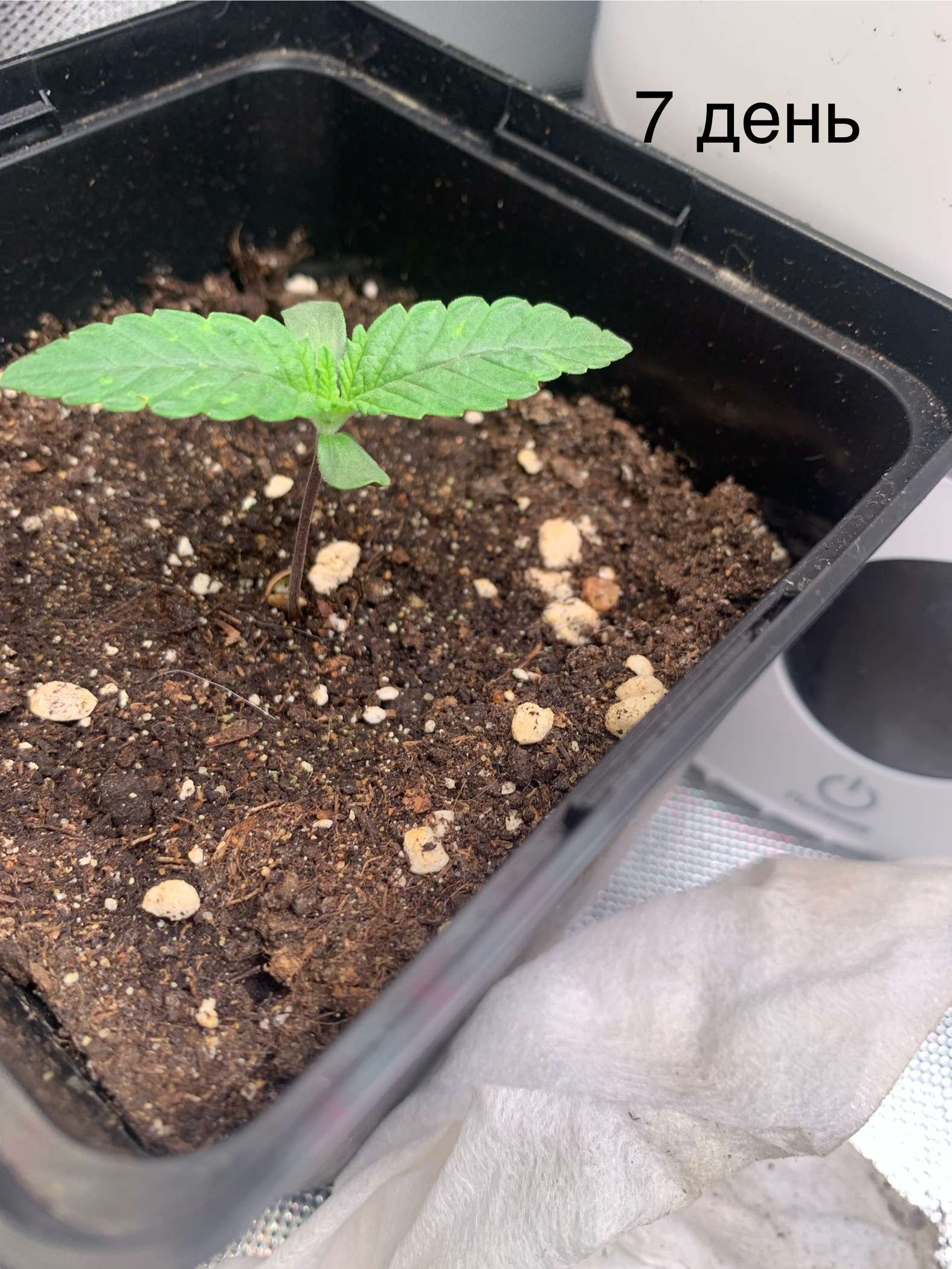 Прошла неделя. Вообще ничего не делаем. Был полив один с удобрениями от TriPart для первых листов. Вроде никаких проблем нет. Пока разрастается корневая-сверху тоже растет чуть по чуть.